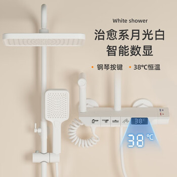 刚收到就拆开了包装,第一眼看到我就知道是我想要的颜色,黑色款配我的白瓷砖,看起来高端大气上档次,上面的顶喷是蛮大的,手持式的喷头刚好合适,顶喷可以调节高度和角度,双11购买价格实惠,现在房子在装修,还没有安装,使用体验等安装后再追评。