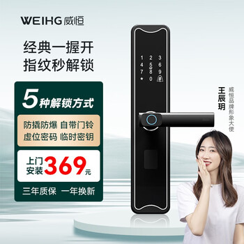 讨论真实威恒S300指纹锁好不好?是否值得买?一直想买一个指纹锁,这次给推荐的TCL确实不错。黑色哑光比较显质感,有指纹,密码,临时密码,蓝牙卡,远程,钥匙开锁方式。都试过,感觉灵敏。远程也很方便,个人感觉比临时密码都省事。家人都录取了指纹,开锁一般1-2次都会成功,比传统的钥匙方便多了。京东客服联系及时,安装后有售后回访,师傅安装认真仔细1个多小时安装调试完毕。本次购物满意。感应良好,开门快捷。安装师傅人很好。客服也很好,很耐心,门孔不和,加了60扩孔。锁不联网的状态下也可以在手机app上生成生成一次性密码,挺方便的,指纹和密码还有卡片,师傅都帮我弄好了的。而且可以通过手机号直接分享管理权限给家庭成员。