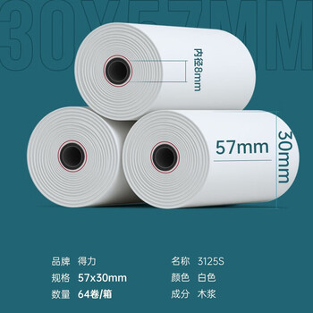 得力的产品,的确给力。纸筒直径小,纸卷多,纸的质量也很好,打印效果明显。图是借的,懒的拍了。以后会继续购买