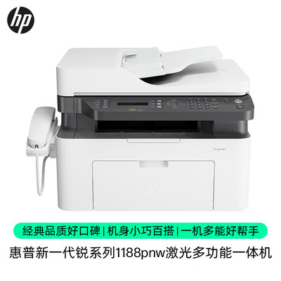 看了好多打印机最终选择了这款惠普1188pnw打印机。颜值高,产品质感不错,可以连接USB,也可了解无线,非常方便,打印速度不错,打印效果清晰,很好。打印速度超级快,超出我对喷墨机的认知打印效果:打印黑色,速度快,字清晰,无毛边。彩色饱满操作难易:操作简单,自带连供非常好用其他特色:加墨方便,不漏液有优惠券的,搞活动买的性价比不错,好东西值得拥有哈!! 惠普1188pnw打印机价格参考: 惠普(HP)1188pnw 激光多功能一体机四合一打印复印扫描传真自动进稿器无线版活动到手价格1669元[url=]【[/url][url=]现在的价】[/url] ! 1、惠普1188pnw打印机打印机到了,白色好看。最喜欢无线打印,太方便,手机里文件直接打印,不用再倒电脑里。孩子现在学校打印材料太多,以前都是去复印店打印。现在自己打印太方便实物跟介绍描述的一致,按照操作说明操作了一遍,很好用,可以用手机直接操作下载,用电脑也可以操作,复印和打印功能都很好用,不错哦,打印照片或者其他的都行,功能丰富,操作简便,送货上门,很好! 2、惠普1188pnw打印机产品包装:包装很完整,很精致,符合惠普的一贯做工打印速度:打印速度着实不快,很慢,急性子的不要买这款外形外观:自己选择的,外观肯定是自己喜欢的,这个一点问题没有打印效果:新机子效果肯定没问题,很清楚操作难易:一开始好长时间连不上无线网络,最后经过咨询再加上自己琢磨好歹连上了,打印就比较简单了打印机很好用,客服耐心指导,5分钟搞定安装,打印清晰,复印清晰,还可以打印照片,真的是太棒了,有附带少量打印纸和照片纸,办公和家用都是不错的选择 3、惠普1188pnw打印机M1136这款打印机是办公打印机里面比较优秀的一款了,以前单位用的就是这款,现在当老师,需要打印很多东西,毫不犹豫选择了它,打印复印扫描三种功能于一体。机子运行声音不大,而且配有安装光盘,方便安装。售后的态度也非常好。第一次自己没有安装上,打电话给售后,非常耐心的讲解,直到添加成功。才不久预付定金,虽然是调货产品,但也非常快的送到了。挺好用的,开机设置按照说明书和指导视频来弄,几分钟就搞定了,打印效果超级好,真的不知道为什么有人评论说不好?我觉得打印质量很高啊,很清晰,送的墨盒虽然只是用来设置用的,但也能打挺久的了,我拿着打了一幅高清手绘漫画稿,妥妥的,墨盒还是显示是满格的,很耐用 4、一直买这个品牌的打印机,打印机质量最好的品牌,原来公司用的m1005型号,一直用了16年才坏,不值得修了,直接扔掉。就买了这款。价格便宜,扫描、复印、打印功能齐全,USB、和无线网络两种连接方式,家里几台电脑都能同时连接到打印机使用,打印速度很快(无线打印反应稍慢)打印出的资料干净、清晰,比原来的旧机器和家里的喷墨打印机好用多了
