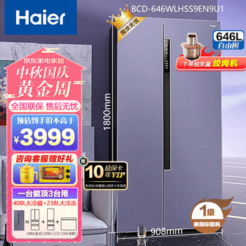 点击>>查看海尔BCD-646WLHSS9EN9U1最新优惠底价>>