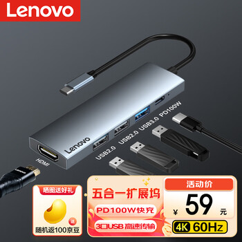 联想拓展坞设计新颖时尚,拓展端口丰富,且提供的传输速度满足日常工作学习所需。性价比非常高,除了usb还带有一个typec接口。非常适合大家购入。