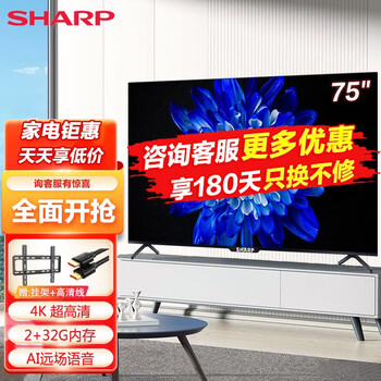 盘点SHARP4T-M75Q6EA电视机口碑如何?测评怎么样?送货很快,头一天的下午下单,第二天一早就到。送货师傅也很热情,会让你拆机试机没问题后才离开。电视的两个支架自己拿螺丝刀上一下就OK了,电视不错,屏幕清晰,防蓝光对老人的眼睛有益。开机时间大概要十秒多,声音不是很大。质量非常好,不错,客服服务好,回答很及时,颜值也不错,比预想的要好很多,比较耐脏好清洁 显示屏清楚明了,包装也不错,物流很快,很满意,推荐,这台,使用方便 家里面有小孩真的很方便,服务也很到位物流特别好,货好,老板更好,感谢卖家的细致解答,实物比图片还好看哎,赶上活动购买非常的划算大品牌,经常有活动,趁着优惠价买了,非常非常不错,没什么噪音。款式也好看