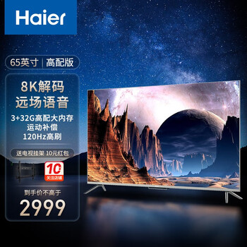 海尔不知道什么时候做电视了,一直用他家的洗衣机,感觉不错的。电视嘛,说实话价格不算便宜的,买的时候觉得配置还挺高的,实际用起来感觉没那么清晰,也没那么高的色彩饱和度的感觉,总体中规中矩。