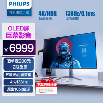 飞利浦42M2N8900/93值得买吗?真实解密飞利浦42M2N8900/93显示器口碑如何?显示器很好用,在宿舍用尺寸刚刚好,物流速度很快,第一天晚上下单第二天早上就收到了,显示器品控在线,整个屏幕没有一个坏点,包装完整没有一点破损,配件也齐全没有漏发。外形外观:外观完整没损坏显色效果:颜色看着很舒服刷新率:超频能上高刷一直在期待着这宝贝!包装很漂亮,里面的显示器也十分新颖,简约时尚,一看是新出产的!27英寸大小,4K级分辨率的显示器显示效果特别清晰,颜色也很鲜艳,更且其可以调节高低,还有丰富的功能和设置,其颜值特别不错!等以后购买新电脑而用,现在用盒子看电视也很不错。
