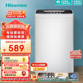 谁讲讲海信HB45D128波轮洗衣机是否值得买?入手测评安装师傅服务态度很好,安装准时,安装服务满意,材质结实,手感好,很得劲,物流也快,性价比很高,值得购买真的好喜欢,客服态度也挺好的,值!以后有需要还会来买东西很满意哦,美观时尚大气,客服超级有耐心,服务细致贴心,大品牌就是不一样完美,产品很惊艳,性价比合适,希望用的长久!宝贝收到了,和描述一样,很喜欢趁着优惠,赶紧入手,是正品,包装也非常的好,没有破损,质量也是没得说,棒特别特别满意,超级好看,客服很有礼貌,很客气,良心商家,支持!真的很好,性价比也很高,质量也很好,物流也快啊!一天就到货了!给家里长辈买的,过年过节可以洗窗帘,容量非常大,洗得也非常干净。带有漂洗自动除泡沫功能非常的优秀。这个系列叫大神童介绍的没写,要么就是我没注意,我觉得是非常好的¥799送到家,安装师傅也非常的和蔼高效。