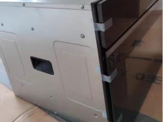 美观大方。就是电线在机器的左下方我打的橱子背板条刚刚好挡着。烤盘边都是胶的不会划伤机器。现在在普通蒸第一次去去味儿。一开机好像还唱歌了?早上发上面了晚上包包子看看。快递师傅真好帮忙台上去的。好有耐心。心心念念的大件。不能让我失望啊。满足我的开心和口福