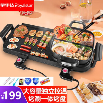 主要还有这个烧烤盘很给力哦,自动断电,加热均匀,推荐购买 商品品质:很有分量 产品材质:棒棒哒 外形外观:颜值扛打 耐看好用产品功能:如果左右两边也能分开控制就最好了, 外观材质:颜值很高,火候也够大,热得快也熟得快,很方便; 商品品质:品质还可以,一边火锅一边烤肉,大人小孩可以分开吃,不怕小孩吃烤肉上火