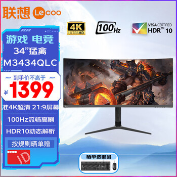 了解一下联想M3434QLC使用感受点评,联想M3434QLC参数底座太大了,别的还好以Hva来说响应速度不错,色彩方面的话因人而异,HDR效果以这个价位段来说很强了,推荐常用Hdr的用户可以考虑选择,但Sdr的效果与Hdr相比就还能再进步点。唯一对我不太友好的一点就是,红色感觉略淡,需要自己调整。如果是3A观影还是很值得推荐的!开了控光之后几乎是无法察觉的漏光很满意,一开始也是无法接受ips屏漏光严重才选择的Hva,有得有失吧。跟客服沟通解决问题,虽然技术问题不是客服能解决的,但客服还是尽责的处理了,还是好评。目前006固件有点点bug,希望技术部门可以再更个新个固件,产品不错希望更好!使用三天后来评价了,聊聊几点感受:1、极致流畅的游戏体验(高刷、极低响应时间、消除画面撕裂)2、沉浸画质表现(色彩层次分明,过渡细腻)3、支架调节方便,调整显示器设置简便我用来看看电影、打瓦罗兰特,这款显示器能给到很高的情绪价值,非常推荐打游戏的玩家购入。