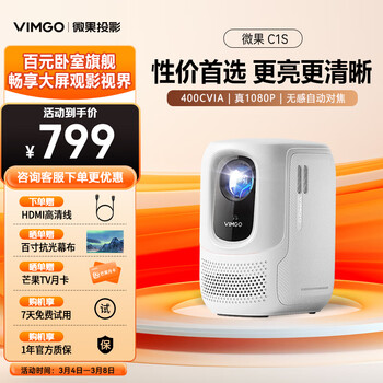 质量评测微果C1S性价比高吗?微果C1S口碑如何?效果非常惊喜,没想到这价钱买到性价比这么高的产品,投屏的超级清晰,视频就是随意播放的效果,自动对焦,摁两下开机,所有操作都是傻瓜式操作,智能投屏非常简单易上手,各种设备一键互联,很方便,给老人用也没问题,这款投影仪非常小巧,投影清晰度很好,色彩均匀且鲜艳。当贝市场的应用非常方便,界面操作也很简洁。总的来说,在2000元左右的投影仪中,它是最优选择。灵动岛还可以进行人机互动。小贝机器人也可以方便地进行操作,因此这款投影仪是一个不错的选择。晚上投影效果很好,白天拉上窗帘也可以!音色还不错,可以满足观影和听音乐的需求