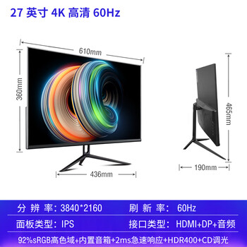 尺寸大小:27寸搬砖效率更高,2k分辨率码字更爽外形外观:单人办公桌正合适,边框小更简约显色效果:正常模式颜色真实,护眼模式会略有特殊颜色其他特色:升降方便,横竖都可