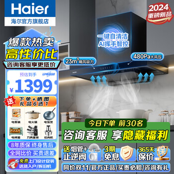 这款海尔油烟机7字型三吸的、吸力很强大、厨房还没搞好、等待安装