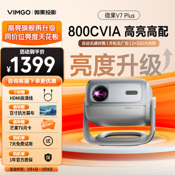 大家觉得微果V7 Plus投影仪使用测评,口碑如何?第一次买投影仪,真的有惊艳到我,无意中翻到这款,趁着活动就下手了,效果比我想象中好太多了,投在墙上就很清晰支持各种投屏非常方便,音质效果也是杠杠的,而且带有镜头盖可以保护镜头,可以不用买电视机啦,有了这款投影殖时可以享受百寸大屏,说实话真的太喜欢啦年轻人的第一台激光投影,很不错!这性价比真的顶。体积和我的macmini还小还轻,真的可以直接放包里就行。机器颜值很高,播放了视频40分钟温度很舒适,噪音基本没有可以忽略,最满意还是接口,Type-C电源,USB3.0的接口,HDMI2.1都很顶啊,就很值!