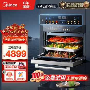 [智能王牌]美的蒸烤箱蒸烤炸微烘五合一 SX5心心念念的宝贝终于到家了,这款嵌入式五合一的功能多而且很好看,非常有质感。不得不说是个厨房的好帮手。商品质量很好,用料扎实。彩屏非常容易操作,配送准时快递速度很快,产品非常出色,具有高颜值,采用一体化搪瓷清洁设计,易于清洁。此外,它具备丰富的蒸煮、炸、炖功能。价格优惠且菜谱多样。特别是国补加双12,优惠力度大大超过往期,在各种平台蹲了一个月终于买上了,先是选品牌再自种型号的对比,本来想买高端点的,考虑到我们是初次使用,没有经验,做面包烘焙是新手,所以有个练手的过程,纠结了许久后,想着先入台性价比高的来玩玩,55L容量,够小家庭使用,以后可以美美地打造生活,享受美食带来的快乐。另外,装修时特别要注意,提前准备好电源16A,面板记得配套,嵌入尺寸告诉给厨房设计师,否则后期安装容易翻车。功课做足了,就可以避免尴尬,用起来就没那么多问题。