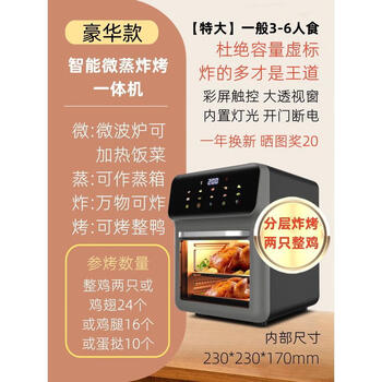 很好,尺寸刚刚好,赶着补贴买,价格合适,不错。他毕竟价格摆在这,功能比较全了,蒸,烤,炸,微波,能省很多地方,蛮好的,颜色也还可以,白色,百搭,菜谱很厚,有的玩了