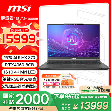 点击>>查看微星创造者16 AI Studio A1V最新优惠底价>>