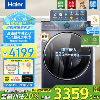买了海尔洗衣机,很好用,比以前的惠某某声音轻好多了。海尔大品牌还是品控的。家里的冰箱和空调全部是海尔,用了好多年了。当天买的洗衣机,第二天上午送货,晚上来安装 ,这个服务绝对可以。全五星。