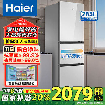 求反馈海尔283L三开门风冷无霜真的好吗?海尔冰箱好吗?冰箱质量很好,做工精细,制冷效果不错,还是品牌有保障,小巧方便,不会占用很大空间,冷冻室制冷效果很好,冷藏保鲜也不错,冰箱音量适中,而且价格实惠,物流也很快,冰箱收到了,大小特别适合租房用,有冷藏冷冻,这么小的冰箱还有单的冷冻真是太好了,效果非常好,声音也好小的,非常满意的一次购物是一次完美的购物。制冷效果确实不错!开机几个小时后,冷气腾腾的往外冒,运行时的声音很小,物流送货速度也快,服务态度好,快递小哥帮忙送货入户上4楼,冰箱运输途中也没有破损,客服服务态度也很好,服务到位,有问必答,使用了几天了,也挺省电的,真心点赞!很不错的小冰箱,性价比确实很高,好评是必须的!