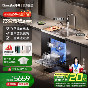 点击>>查看冈田900mm 双槽+13套洗碗机+飞雨瀑布+超声波最新优惠底价>>
