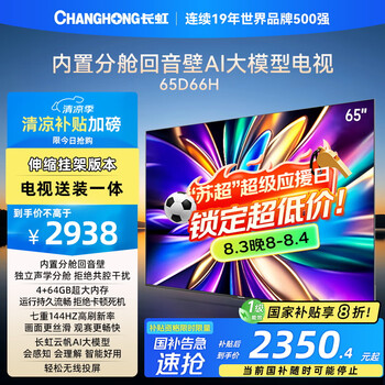达人分享长虹65D66H测评怎么样?长虹平板电视口碑如何?性价比高功能强大,已经安装好了,质感超好,质量好的没话说,拆洗简单容易,功能全面,师傅送货很快,服务态度很不错,做工很精致,美观大方,给家里人买的,不是特别沉,样子也高大上,棒棒棒,这一款省电,耗电少,服务好,送货快非常满意,安装人员服务不错,物流发货快,五星好评!商品质量不错,特别喜欢,一收到就迫不及待地打开了,还是用之前的牌子,服务到位完完整整没有磕碰外形外观:非常高端上档次 运行速度:很快反应灵敏 屏幕音效:音效提升很大 比老电视天差地别了尺寸大小:果然要买大的 之前还考虑75 现在觉得没选错 有多大买多大即送即装:师傅装的很快 也没有收费免费送装 给小星客服点赞!