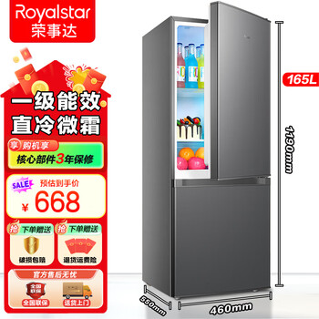 下单第二天就收到了~挑了好几个牌子 高度有限,这个容量是最大的了,还是三门的,太合适需要冻区大一点的家庭了外形外观:很好看很高级容量大小:容量很大