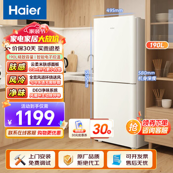 海尔品牌值得信赖,风冷型冰箱,价格也挺合适的,家里人口少,冰箱大小刚好,已经用了几天了,噪音也比较小,保鲜和制冷效果都还不错