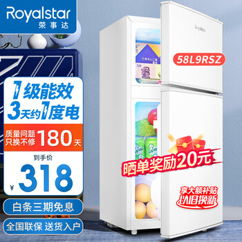 大家评:荣事达58L9RSZ 双门真的好吗?荣事达冰箱好吗?商品已收到。物流很快,下单第二天就送到了。用了一段时间才来评价,这款小冰箱很实用,不占地方,工作时声音很小,双门结构,上开门是冷藏,使用起来很方便,下开门是冷冻,而且冷冻还是抽屉式设计,不会造成食品串味,适合1-2个人。是一次愉快的购物体验。你不像房子准备出租 但是不想买太差的家电 选了很久 发现这款大小尺寸款式都很喜欢 而且价格不贵 就买了试试 没想到超级快 买了第二天就送到了 本来还以为会等很久 目前还没插电用 师傅送到家里指定位置真的很辛苦 东西实物很好看 等用了再来追评