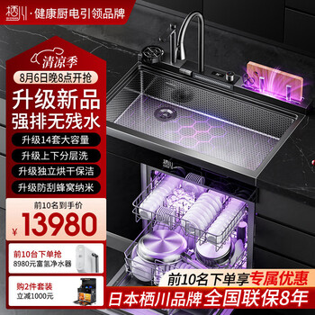 朋友推荐买的,双面洗洗碗机,颜值非常高,一级水效,还能当消毒柜用。京东物流速度快,次日达,安装师傅也非常给力,大喷淋臂,洗的很干净。