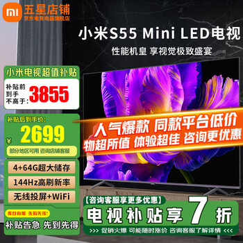 剖测分析小米S55 Mini LED屏 2025款是否值得买?小米平板电视测评好不好?品控好,没有任何瑕疵,算下来真的好划算,解答很专业,没有一点不耐烦,家人很满意。推荐购买,设计节省空间,颜值高,噪音低,很方便,牛牛牛!完美,运行平稳无噪音,邻居看见了也是一直夸赞,时尚大气,客服超级有耐心,满头大汗认真安装,商家服务,质量各方面都很好,收到啦,很不错,非常喜欢,在这给商家点个赞非常值得信赖的品牌,非常满意 家里人都夸好外形外观:电视大小正合适,也很薄,在边框很薄,看着很好看运行速度:运行速度快,画质清晰屏幕音效:声音很好听,电视后边是两个音响,放了音乐音质也很好功能效果:画面很美,没有开机广告,这一点特别高,颜色也很好看