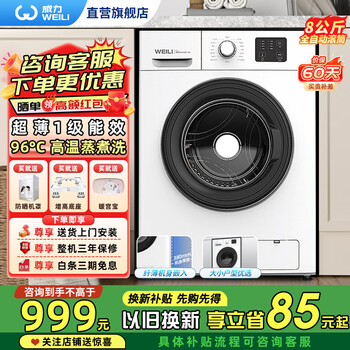威力8公斤超薄白滚筒洗衣机参数,好不好? |