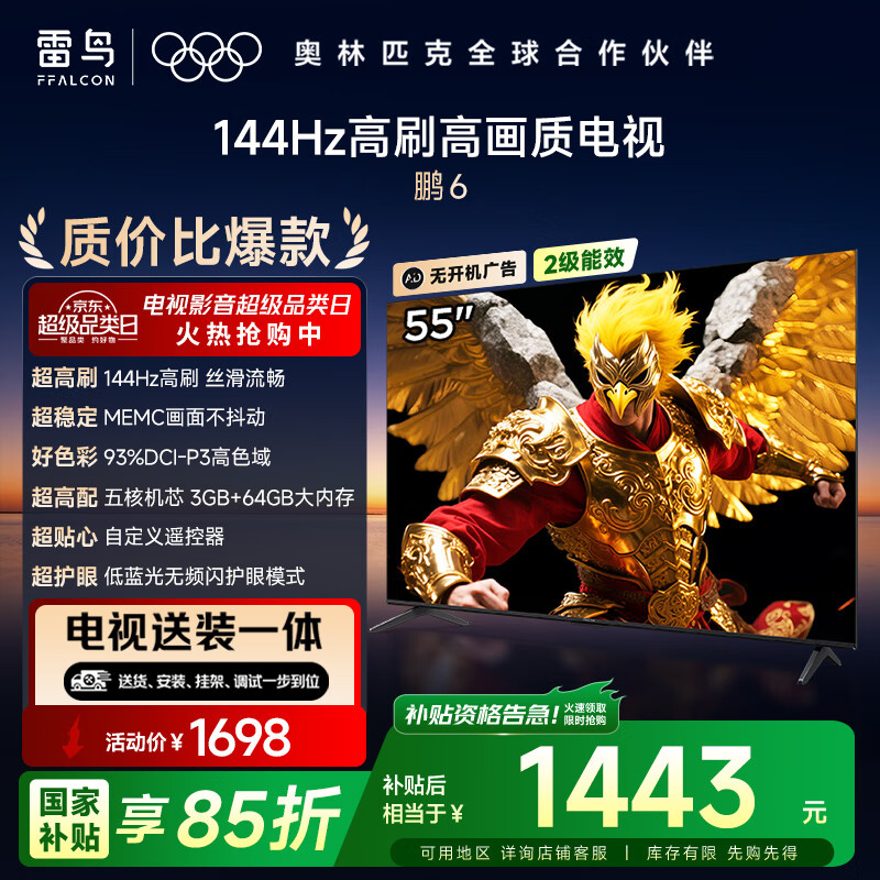 点击>>查看雷鸟55S375C最新优惠底价>>