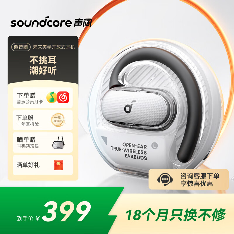 跑步听歌神器,对于跑步不喜欢戴入耳式耳机的人员非常友好,重量轻,戴上后跑步无感、不夹头、不晃动,音质清晰、低音沉稳,不影响听环境音,安全保护性好。
