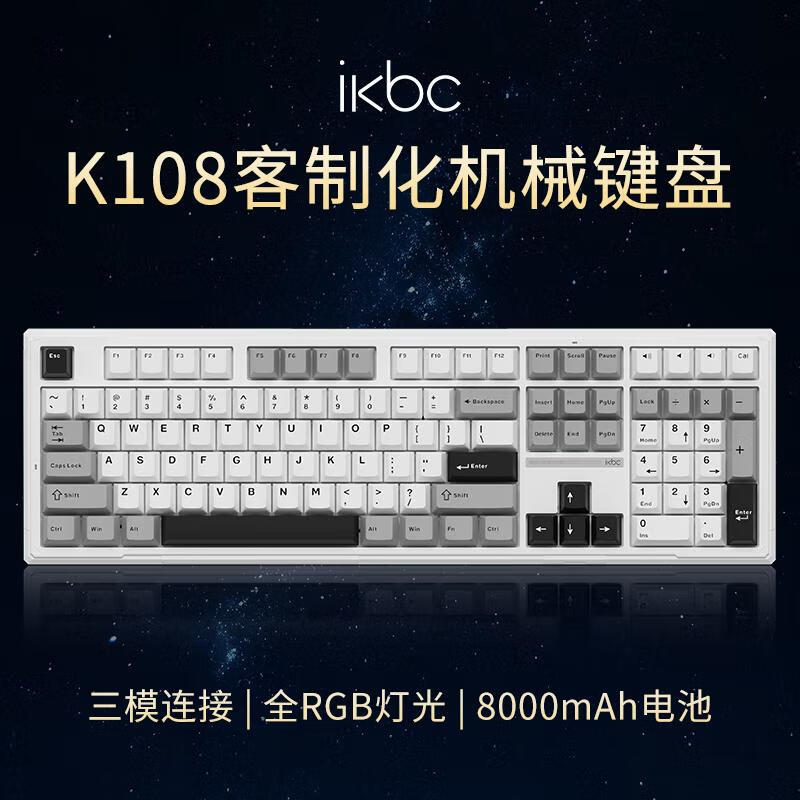 揭秘ikbcK108机械键盘参数,怎么样?LANGTU的GK85,小的机械键盘,在购物车里面躺了半年,后来降价拿下,用了一张plus优惠券到手147元,外观新潮,灯光有好几种模式,与电脑可以用三种模式连接,有线、蓝牙、2.4G无线连接,玩实况足球灵敏度可以,性价比超高,颜值在线,还能调垫IOS和win模式。外观颜值:外观是好看的,很耐看响应速度:三模目前用下来都没啥问题,挺好舒适度:适合办公用,打游戏还是得段落轴总体评价一下:本来以为首发299便宜100占了大便宜,没想到也是营销策略,日常价也就三百出头,顶多便宜了二三十,发货等了20天,补偿的手托还得花9.9买,而且还没买到,没货!自己去dy魔技客买了个,挺好用。