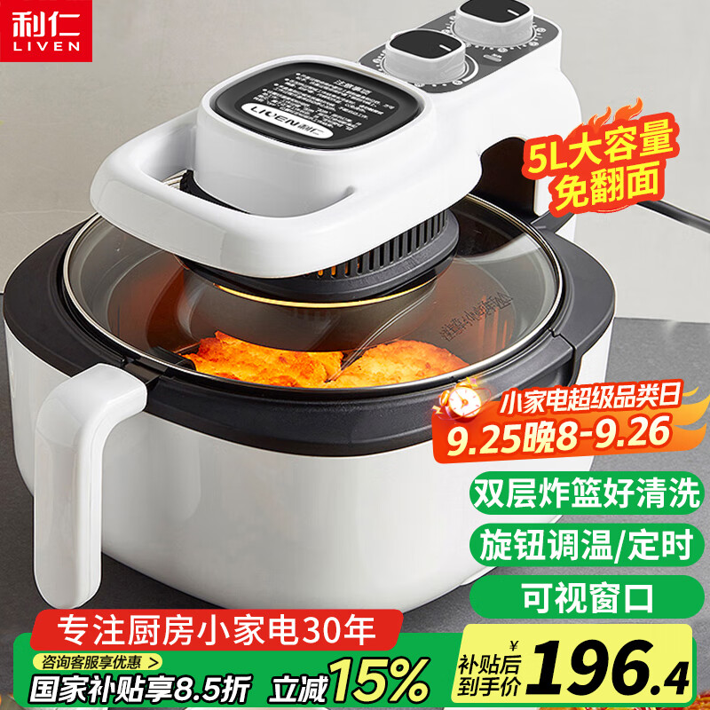 利仁空气炸锅KZ-J5000A好不好?是否值得买?这款空气炸锅功能强大,配合手机app使用更是无敌了,里面有好多菜品可以参考,还可以拍照识别食材(美中不足这个功能识别成功率太低了),买回来几天烤肠、披萨、蛋挞、肉串全部都实践了,还是很方便的,以后做饭做菜是不发愁了。机器上方还有nfc功能手机触碰就可以打开app方便适使用,强烈推荐啊。外观设计漂亮,尺寸大小合适,包装仔细完整,宝贝手感不错,感觉很好,发货速度快,服务态度一流,给力!5星好评!宝贝已收到,是我想要的,手感很好,质量也挺好,有问题客服也很快就解决了,态度非常好,一定好评!宝贝收到了,颜色很好看,质感也很好,样子简单!是我想要的!!下次还会再来!
