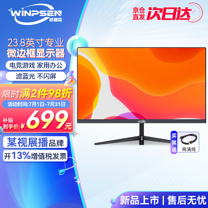 威普森WPS-F23.8E使用感受点评,威普森WPS-F23.8E真的好吗?显示器看上去简单大气,做工也很精细,显示屏也是很清晰,色彩很好,效果是比以前老显示器好很多!无论是游戏还是看片都爽很多。用了几天没发现质量问题,显色也很准,不用特意调也没怎么发现偏色,效果不错,画质好,色彩好。哈哈,整体来说性价比可以这款显示器色彩鲜艳,画面清晰,视觉效果非常棒!无论是在办公室工作还是在家里玩游戏,都能带来极佳的使用体验。特别是对于喜欢玩游戏的玩家来说,这款显示器的流畅度和响应速度都非常出色。强烈推荐给追求高性价比的朋友们!