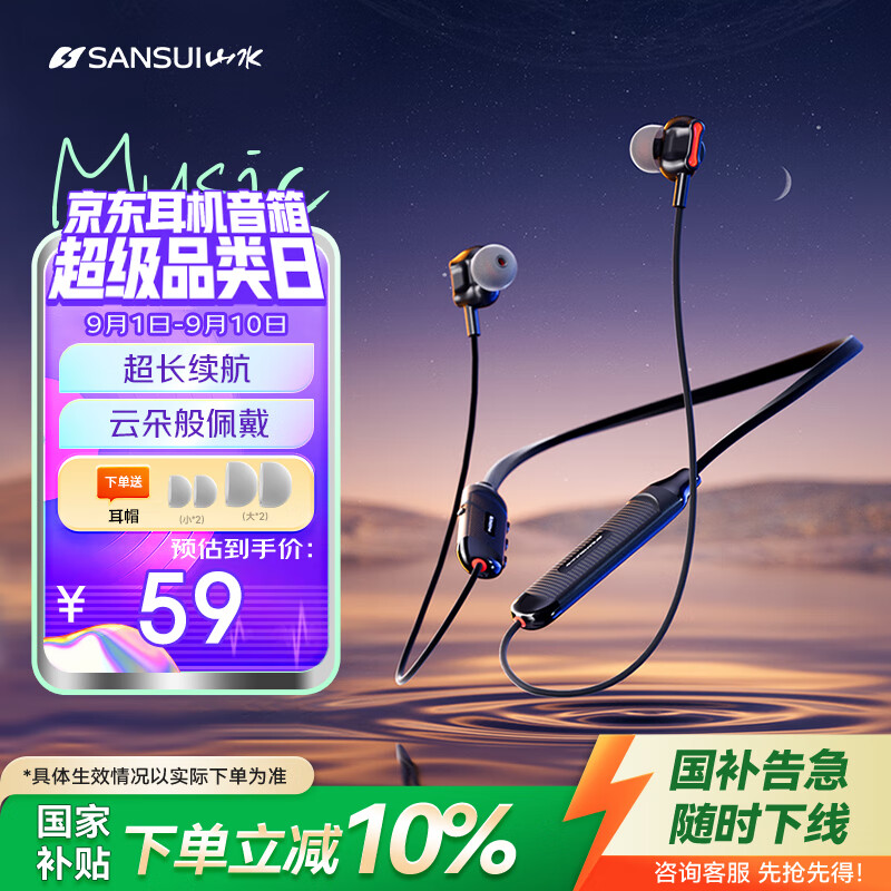 强烈推荐一款蓝牙耳机,这已经是我买的第2个了。音质清晰,电量续航能力强,半入耳设计耳朵非常舒服,T-C接口充电速度快。而且性价比特别高。