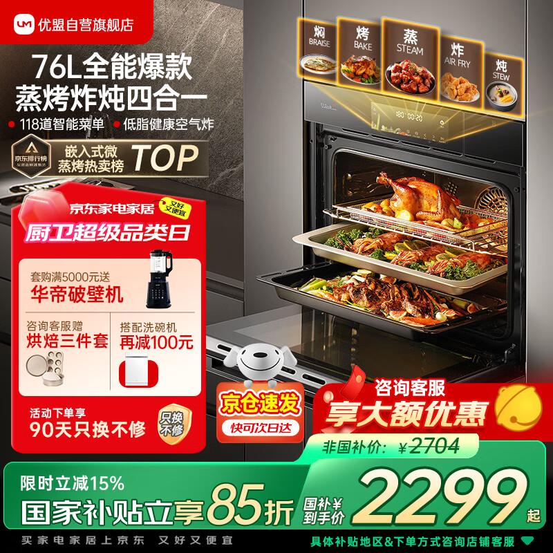 优盟UZK07S优缺点点评,优盟UZK07S值得买吗?特别喜欢它的颜值,功能又多,终于心念已久的微蒸烤炸炖一体机到货了,白色的质感拉满了。操作简单,设计流畅,功能齐全。这下,微波炉、烤箱、空气炸锅、蒸锅,通通可以淘汰了。不得不赞赞京东的服务,从前期的咨询开始,送货,安装,特别是客服小白,负责认真,真的超级棒!之前本来是准备买空气炸锅来着,想着小一点不占地方,清洗什么的也方便一点,后面看着烤箱的价格也不贵,跟空气炸锅差不多,容量还大一些。这款烤箱启动操作都方便,四个按钮,温控也不错,烤了鸡腿,家里小孩都馋哭了。