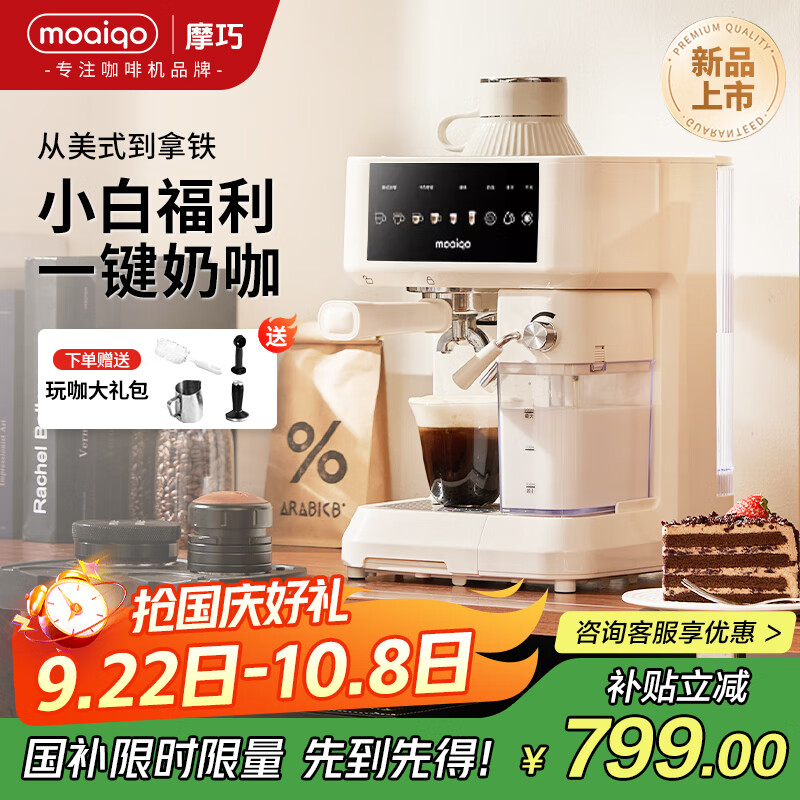 MOAIQO 摩巧咖啡机K3参数,真的好吗?超级喜欢,这个颜色撘配融合度比较高,奶泡也很棒,买了家用咖啡机,基本每天两杯咖啡,这款咖啡机确实好用,压力非常给力,可以萃取出香浓的咖啡,完美释放咖啡的精华,油脂丰厚,口感很好,奶泡系统也很给力,蒸汽系统强劲稳定,可以打出绵密的奶泡,搭配一起真的非常棒,可以在家随时做一杯拿铁和卡布其诺,真的非常方便,特别喜欢,买到真是惊喜,而且复古造型颜值很好,非常耐看,还有个表盘可以看到实时温度,必须赞一个!目前使用一次,轻轻松松出丰富的油脂,感觉还可以吧。不过有bug就是每次倒水进去就会把水用完,没做一杯就要加一次水,另外说明书说如果不插电用的话,机器是不带加热的。送的磨豆机还不错,自带一个手冲的不锈钢网,缺点是磨豆很墨迹