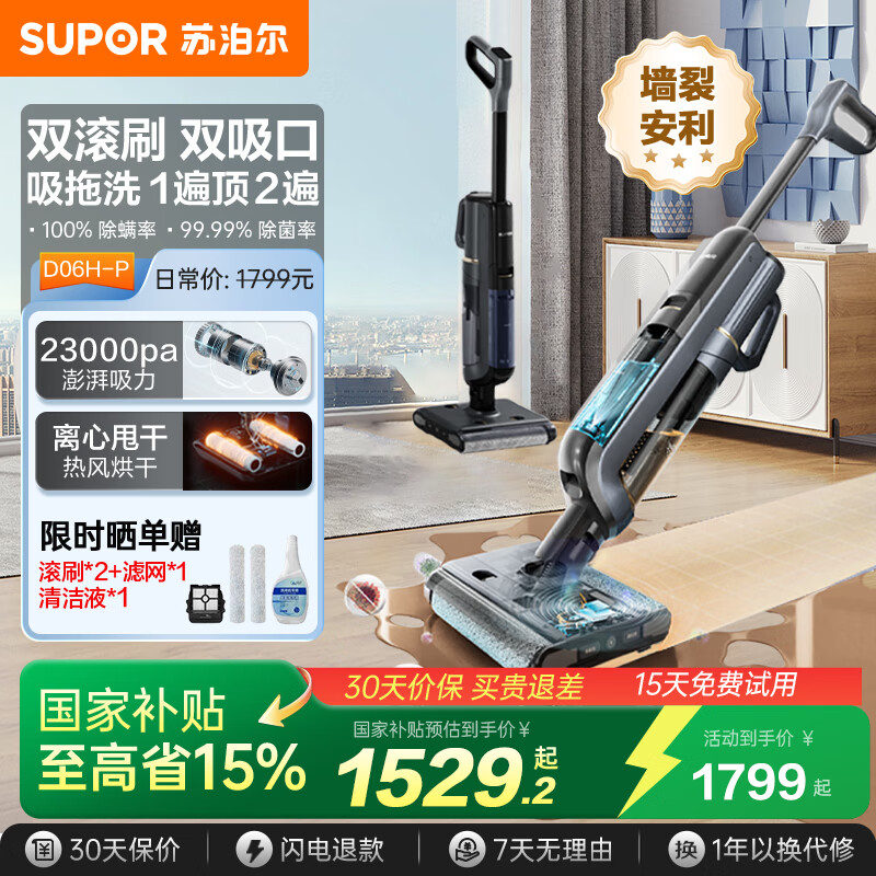 图文剖析苏泊尔EWV-D06H Plus洗地机测评怎么样?是否值得买?总体说真的很好,我很喜欢,也会方便,除尘效果:挺好,吸力大小:吸力大便捷程度:很方便噪音大小:几乎可以接受续航能力:我家110平可以完全够用最后我说的就是,东西很好,就是他们家客服回复太慢啦!希望可以改进一直想买越森吸尘器,又想买洗地机,奈何戴森没有洗地机,終手等到这款带洗地头的V12,现在我拥有了一个 V12,相当于拥有了吸尘器、除螨仪、洗地机。戴森真没让我失望,我家150平,使用吸尘功能基本电量能用到打扫完,如果用洗地功能,电量还能还能余一半左右,我家有猫,每天掉毛量有点大,有了戴森真方便,每天桌面,沙发、地面、床上轻松搞定,干净整洁。戴森的洗地也很不错,拆卸清洗方便,地面的水汽很快就干了,干后不留水印。总之确实是黑科技,很棒!!!