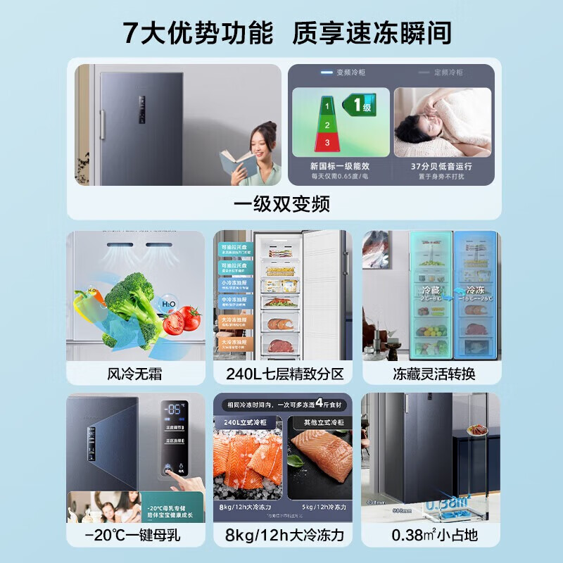 样式美观,随时调控温度,可微冻,冷冻,速冻,特别方便!