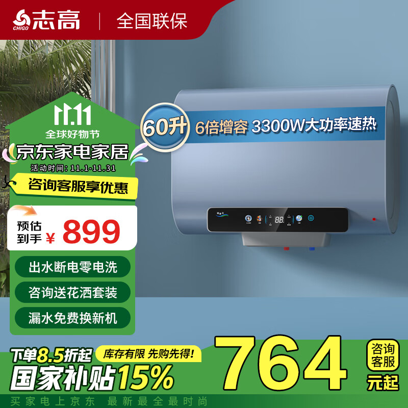 志高电热水器WDF-60GS1真的好吗?参数今天到货,进行了验货,打开以后,很好,是喜欢的颜色,质量也不错,收到很满意,安装顺利,到位,用起来方便快捷,第一次用,加热速度快,出水温度稳,持续时间长,这个产品值得购买,相信这个品牌,继续购买的其他产品!这是个裸机里面啥配件也没有的,可以自己买,也可以等安装师傅来给安装时买他的,不过应该会贵些。我是不懂怕买了不合适就想着买现成的,但安装师傅来到看了我家情况说不具备安装条件,因为是老房子冲凉房没顶的,墙承受力不够,说桶加上水有一百多斤重怕日子久了墙会翻下来,说得烧个架子(我叫人来看他给弄了图片中那种,说这样的可以了。按我理解的安装师傅说的架子是一整个那种,挺费钱的),然后我这是安在外面的还得打洞装插座地线,反正挺麻烦。最后我直接叫帮我弄电线的堂叔全给安装了,他帮我把材料啥的全部买好,我还省事,不用安装师傅从老远跑来给把机子安上去。安装师傅态度挺好也给了很多建议。现在再不用担心会像以前用煤气时那样水压不够打不着火了。目前使用还不错,不过这好像没调温度的,这对我来说问题不大,因为我不用淋浴。水煮好了会自动停止加热。