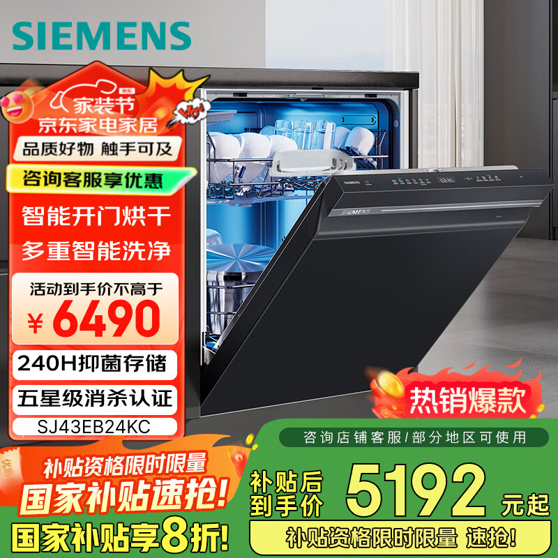 西门子洗碗机SJ43EB24KC好吗?参数洗碗机真的太棒了!彻底解放了我的双手,让我告别了饭后洗碗的繁琐。它的智能洗模式超厉害,不管餐具多脏多油腻,都能清洗得干干净净,连死角都不放过。而且操作非常简单,老人小孩都能轻松上手。运行时噪音极小,不会打扰到家人休息。容量也很大,家庭聚餐后的大量餐具都能一次容纳。烘干功能更是出色,洗完直接烘干,拿出来的餐具干爽无水渍,还能长时间抑菌。有了它,生活品质得到了极大提升,真心推荐给大家!清洁能力:清洗得非常干净,杯子上茶渍都洗干净了。骨瓷的杯子,玻璃杯特别透亮。洗好的餐具干干的,还有余温,和自己洗好的手感就是不一样。外形外观:简洁大方,白色放在厨房特别漂亮。物流速度:快。噪音程度:可以接受的声音。洗涤容量:虽然是6套,三四口人一顿晚餐的餐具完全可以放下。
