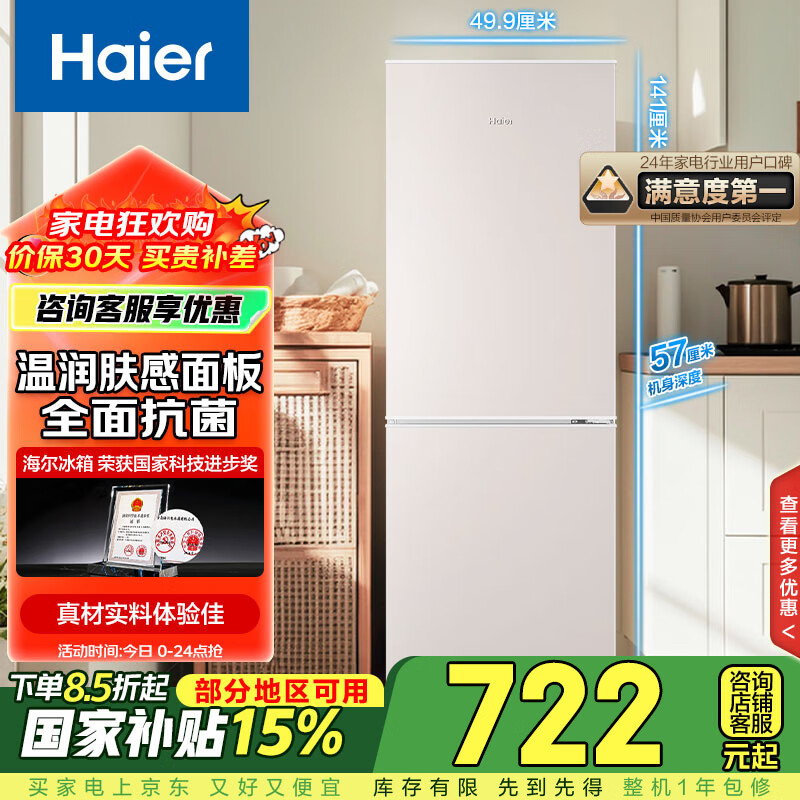 刚刚买的,孩子上学租的房子里,因下大雪,还没开学,冰箱还没用,包装没拆开,就降价,还保价,不如~里行用