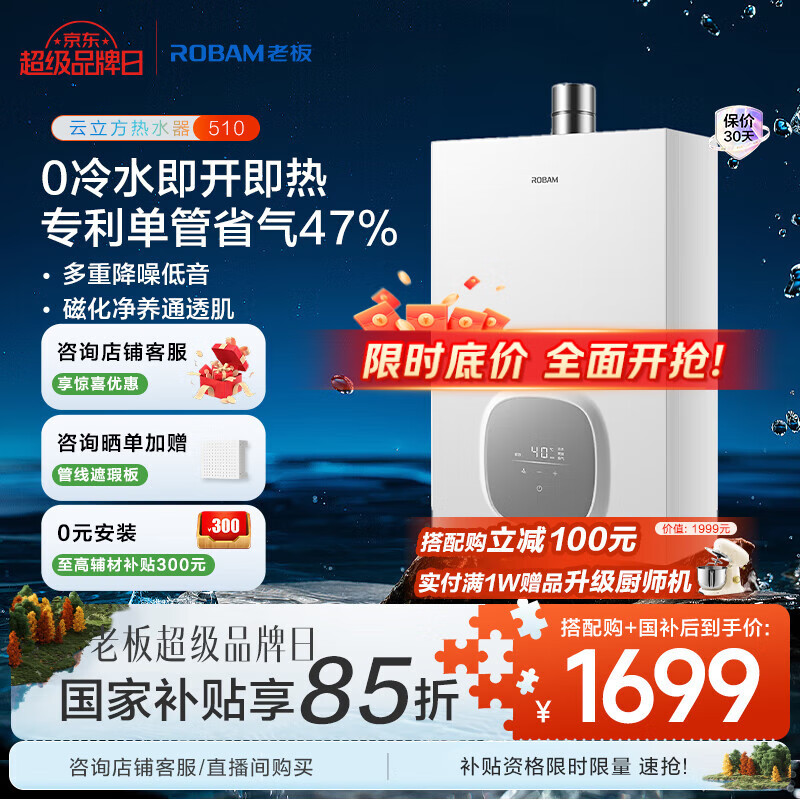 老板燃气热水器JSQ31-HT510A-16口碑如何?使用感受点评海尔天燃气热水器在使用过程中表现出色。首先,其外观设计简洁大方,符合现代家居风格。其次,热水器加热速度快,水温稳定,不会出现忽冷忽热的情况。同时,其安全性能高,具有多重保护措施,使用起来让人放心。此外,该产品的能耗较低,符合节能环保的理念。总的来说,海尔天燃气热水器是一款性能优秀、安全可靠的产品,值得推荐给需要热水器的消费者。转了一圈还是买了美的安睡M9Max热水器,必须来夸--夸!它的加热速度超给力,平时下班回家,原本疲惫不堪,想着洗个热水澡舒缓一下,没想到很快就能享受舒适热水,简直是救星。而且水量足,一家人接力洗澡完全没问题,水温始终稳定,不会忽冷忽热,大大提升了沐浴体验。还有那个安睡模式,晚上运行时安静得很,完全不打扰休息。外观简约大方,放在厨房百搭又好看。而且也不占用地方,节能效果也不错。师傅安装也很到位,态度特别好,值得购买!!!