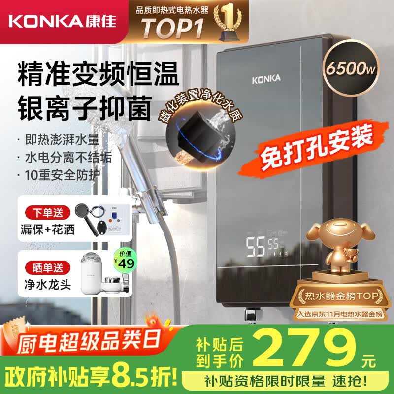 真实点评康佳DSZF-KF6504Y电热水器测评怎么样?评价如何?外形外观:外形外观:设计前卫,感觉不错 大小合适,没有占用太多的空间。加热速度:加热速度非常快,不用等待太多的时间。耗能情况:刚刚开始使用,具体耗能情况不了解。其他特色:最好要说的是京东物流速度很快,快递小哥服务态度挺好的,特别到位。售后服务非常满意。这款热水器,进水过滤小蓝瓶可以过滤大部分的杂质。外形外观:整体外观我很喜欢,灰色的外观 典雅大气加热速度:加热速度很快,3加热此功能非常的好用耗能情况:一级能耗也是我首选,并且能耗较低其他特色:云预约和云智能的特色,可以让我随时随地回家就可以洗澡 安装师傅也很专业,技术很棒。爆赞;推荐大家体验;