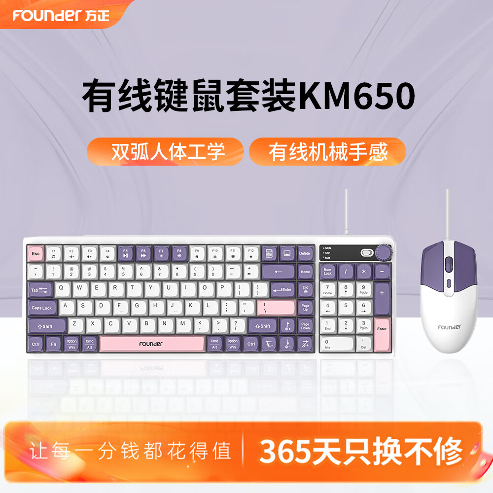 点击>>查看方正Founder有线键鼠套装KM650 淡紫测评内幕情况揭秘>>