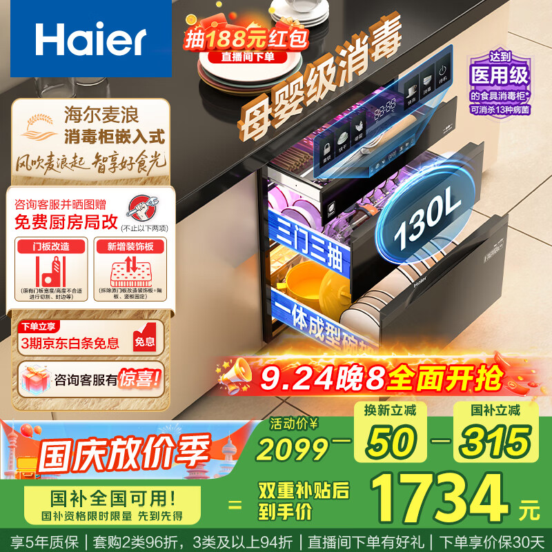 口碑曝光海尔ZQD130F-EB130消毒柜性价比高吗?好吗?宝贝不错,已经是第二次购买了,商家服务好,物流速度快外形外观:美观大方,非常漂亮,产品质量:绝对信任,一直用这个品牌消毒效果:不错空间容量:够大,设计合理,使用方便产品质量:没发现问题,有一个用了好几年了外形颜值很高,开门关门都很顺畅,架子固定的很好,也不会掉落,整体均衡力,体重都拿捏的很好。不是塑料柜子,不用固定也不怕一碰就摇摇晃晃,空间容量很大。消毒和烘干也都很一流。按键明了清晰,美的值得我们信赖。值得购买