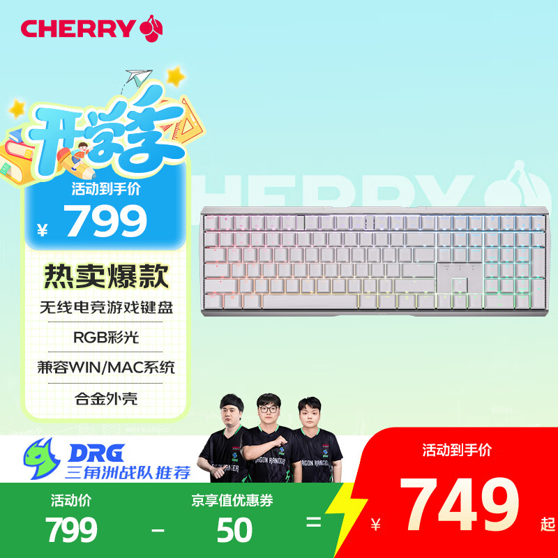 点击>>查看樱桃MX3.0S RGB无线白色红轴最新优惠底价>>