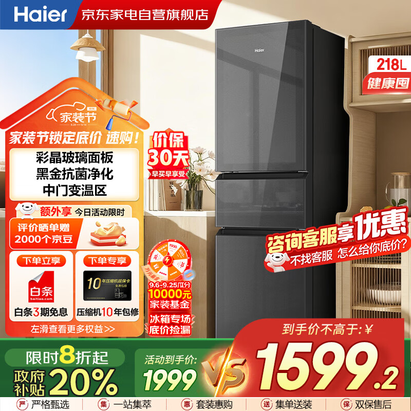 点击>>查看海尔BCD-218WGHC3E9YS最新优惠底价>>
