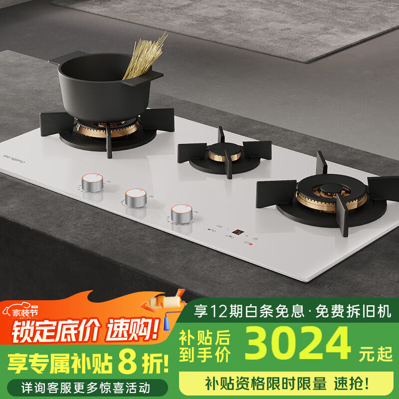 过年回家看到老爸妈用的燃气灶该换了,刚好看到有优惠活动,果断下单,送货很快,自己安装也比较简单。一级能效,调好后火力挺大,面板也好清洁。就是外炉盖的设计有待提高,一个固定环和2个细脚支撑,整个材质是铁的,质感有点轻,不知道耐不耐用。总体性价比高!